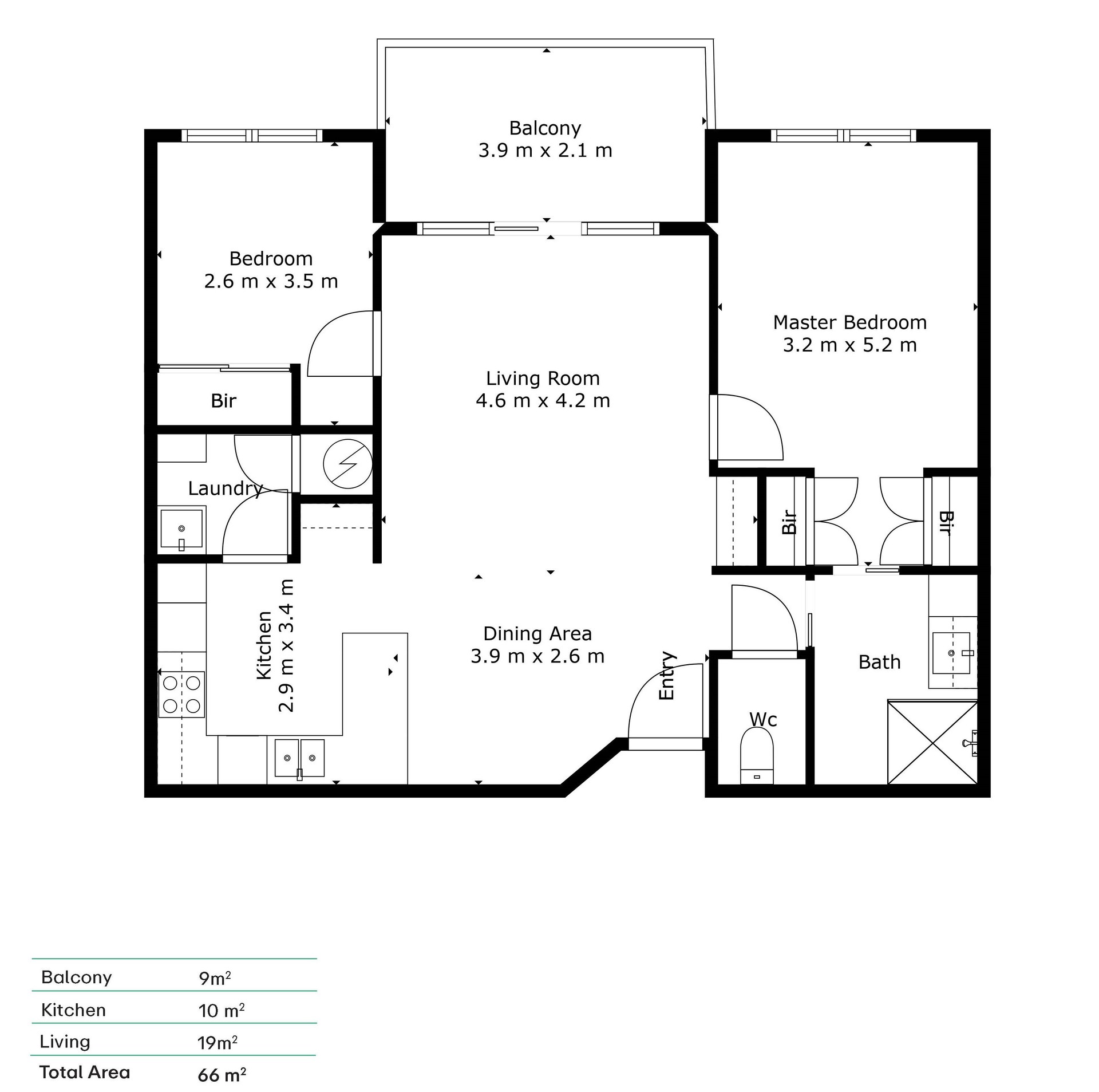 • Two bedrooms, master featuring built-in wardrobe.