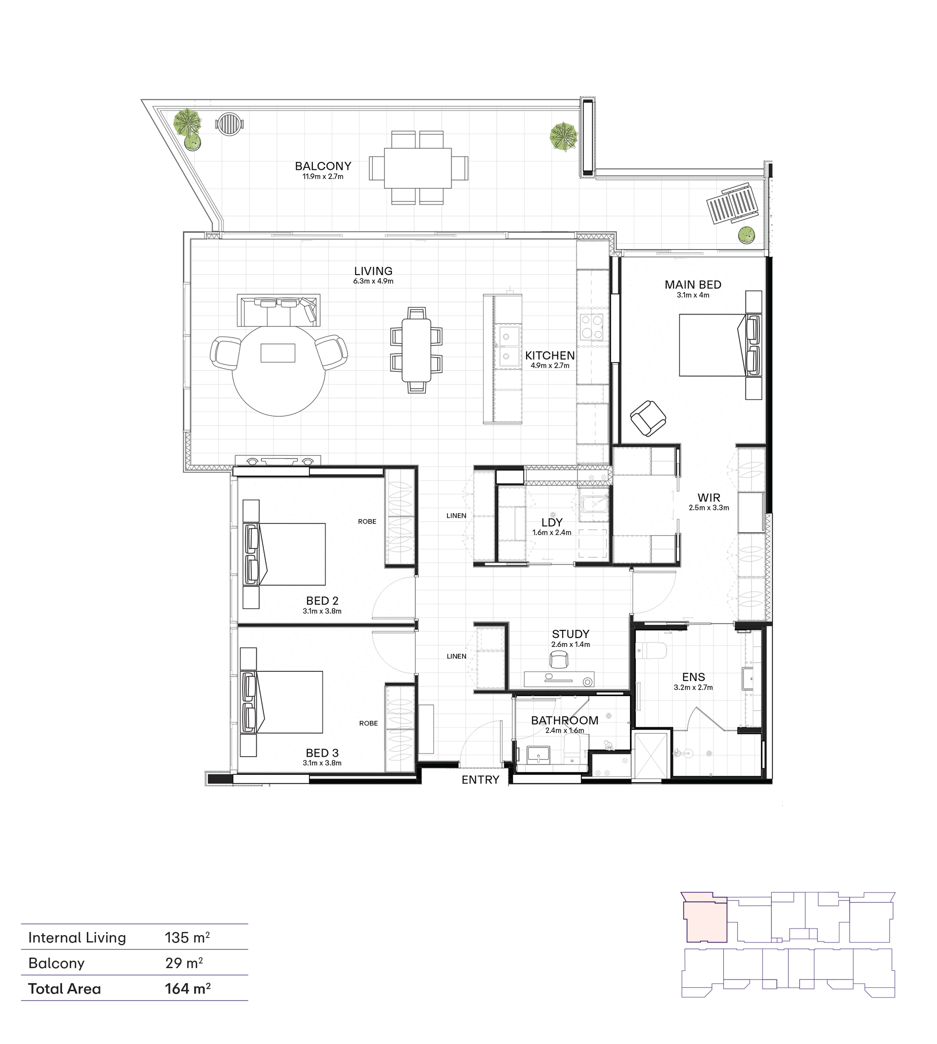 Discover architectural brilliance in this spacious three bedroom plus study apartment at Bernborough Ascot. Thoughtfully designed for timeless elegance and comfort, this apartment seamlessly integrates a considered floorplan with ample storage options, premium fixtures and fittings. A large balcony sets the stage for delightful alfresco dining.